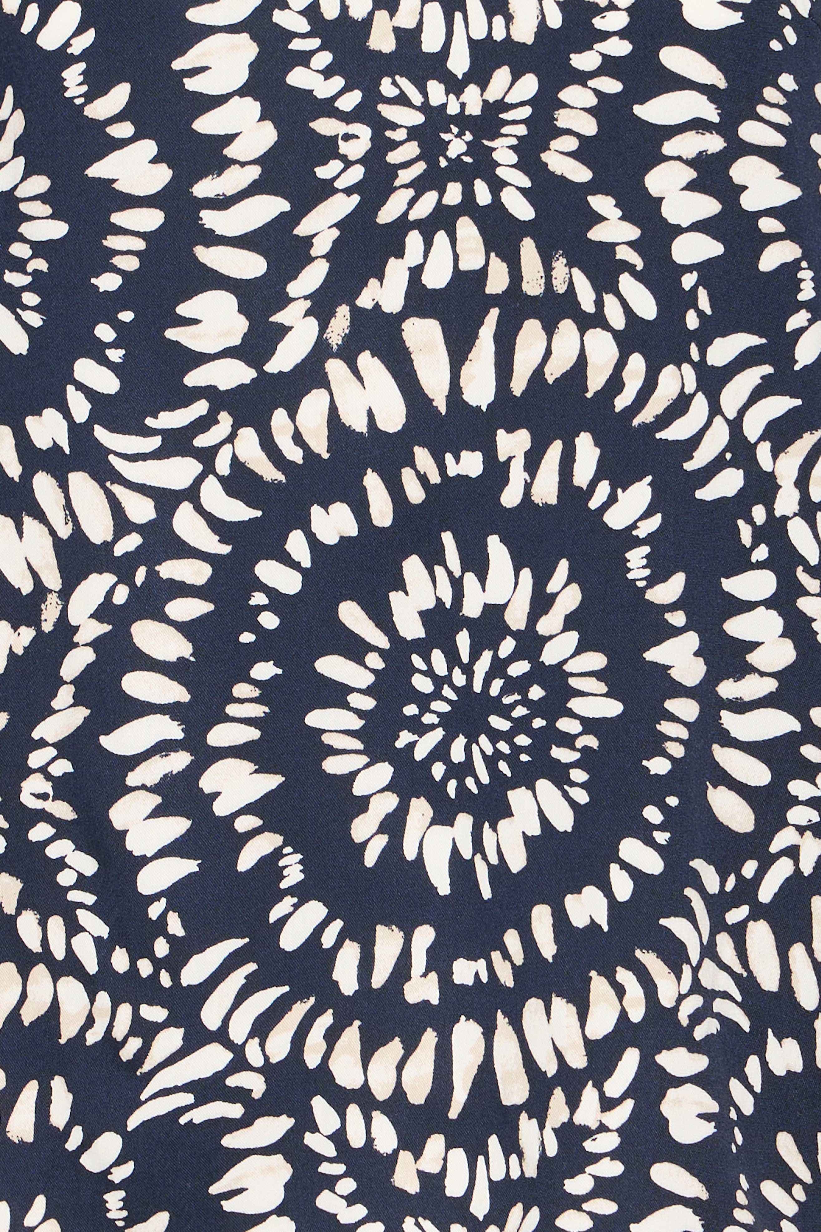 Mouwloze top met V-hals, opvallend grafisch patroon en zachte ruffle mouwtjes. De rechte pasvorm geeft een moderne, coole uitstraling.